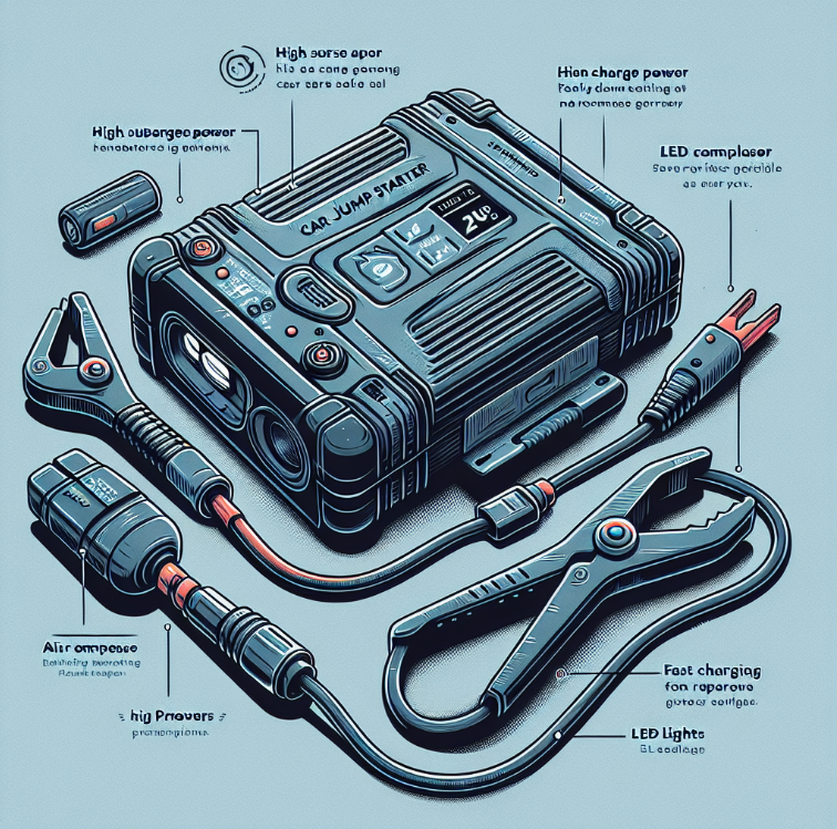 5. 附加功能:一些高级的应急启动电源还配备了LED手电筒、USB充电口(可用于为手机等设备充电)、LCD显示屏(显示电量、状态等信息)等。